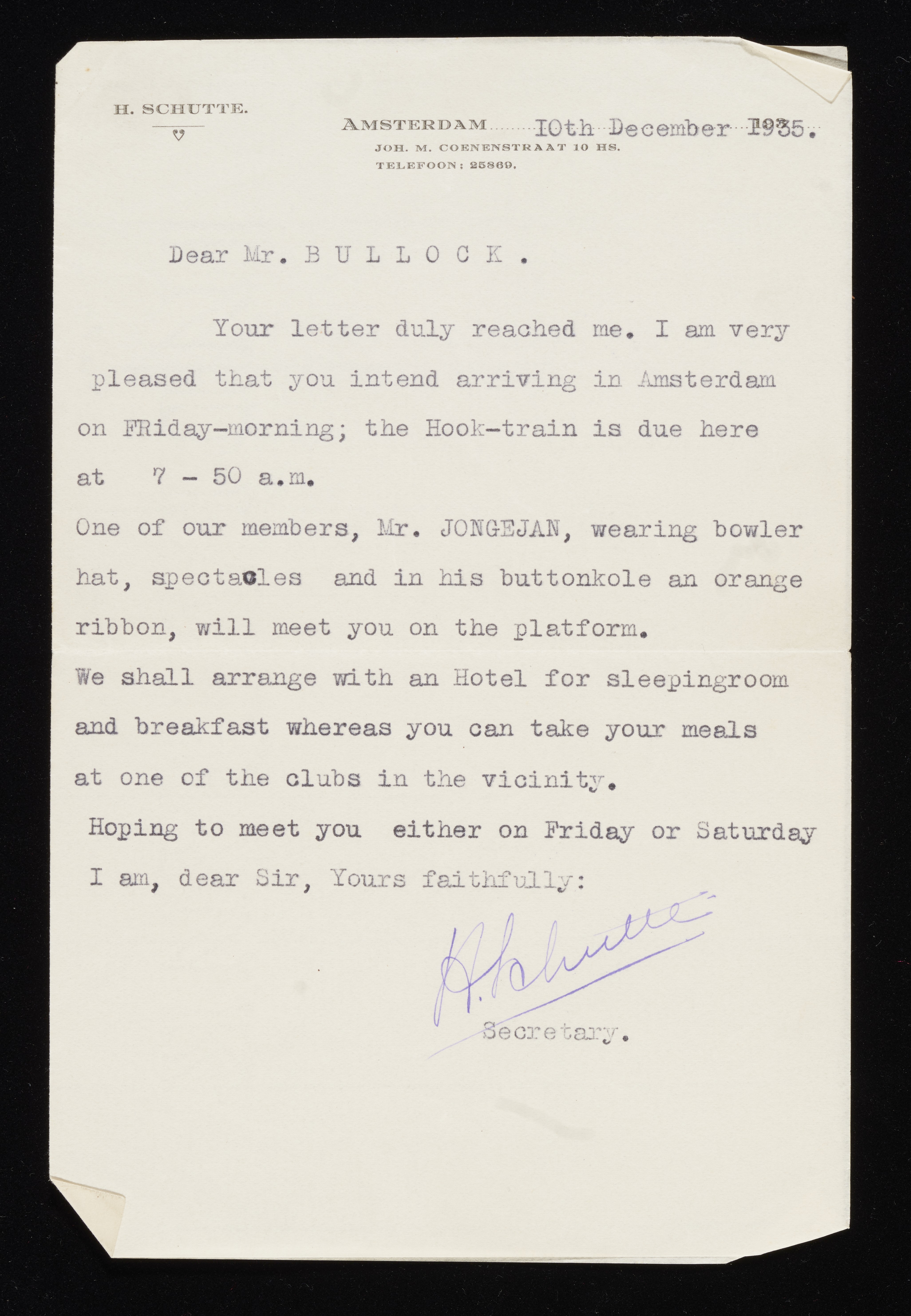 Letter from H. Schutte to Percy Bullock