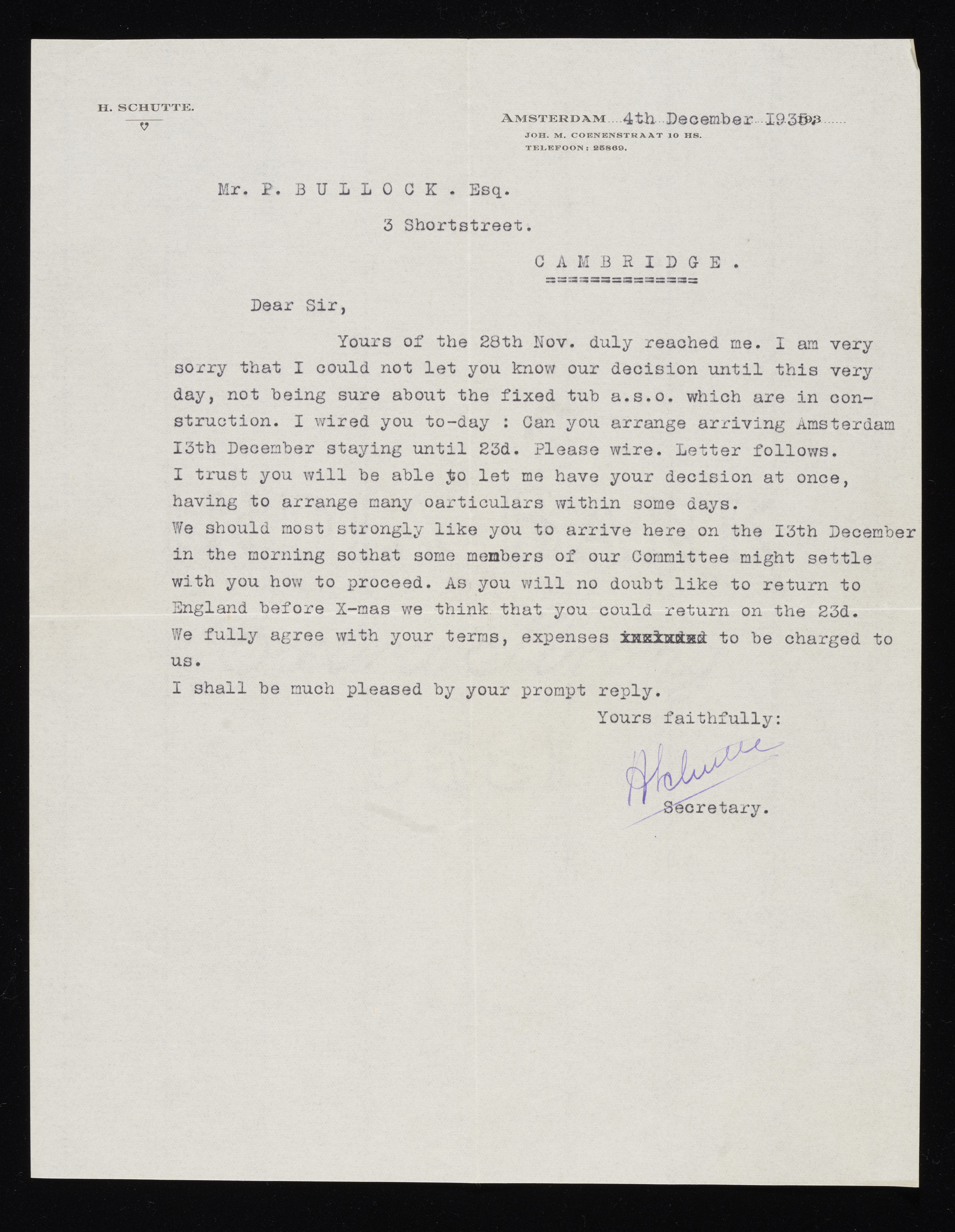 Letter from H. Schutte to Percy Bullock