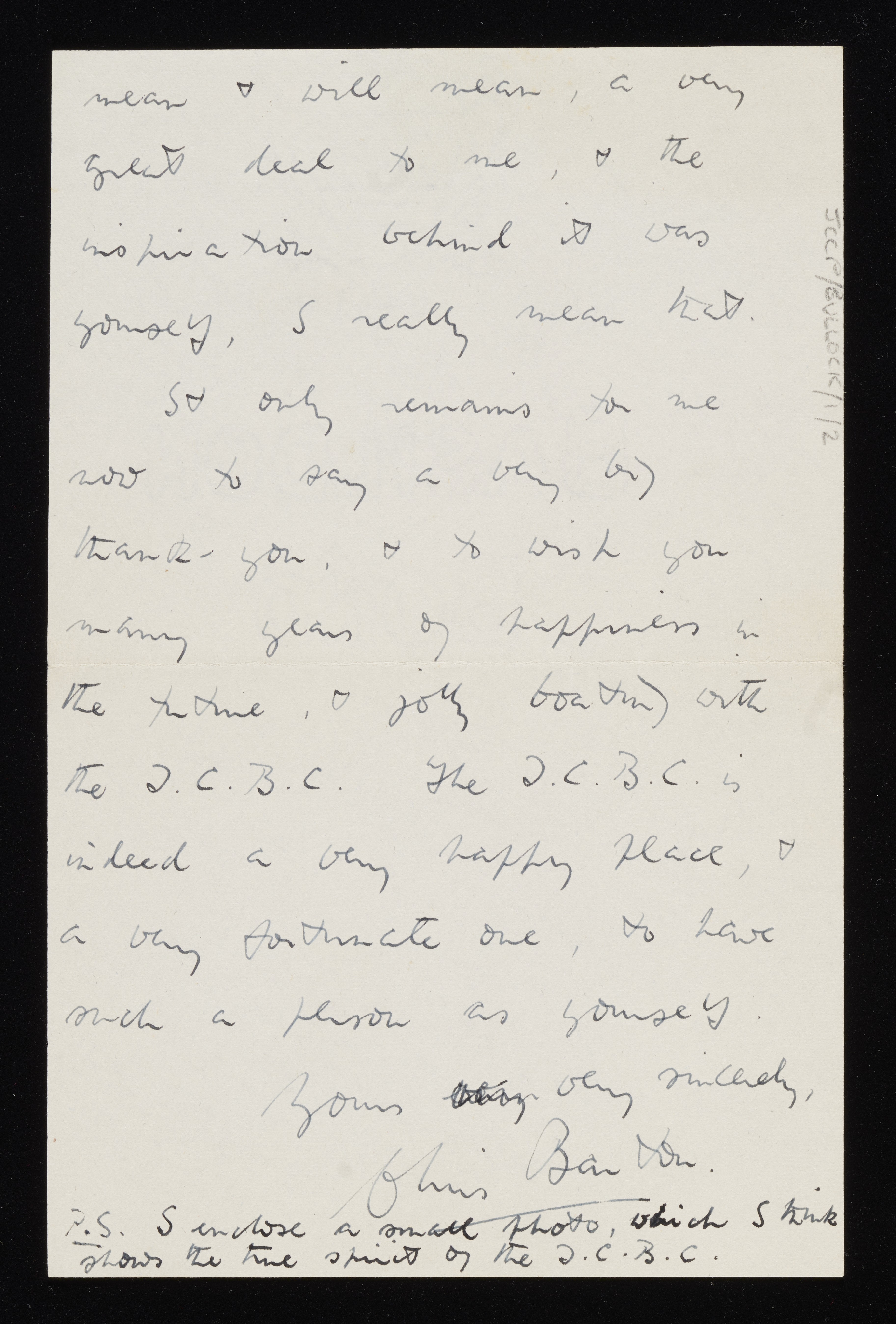 Letter from Chris Barton to Percy Bullock