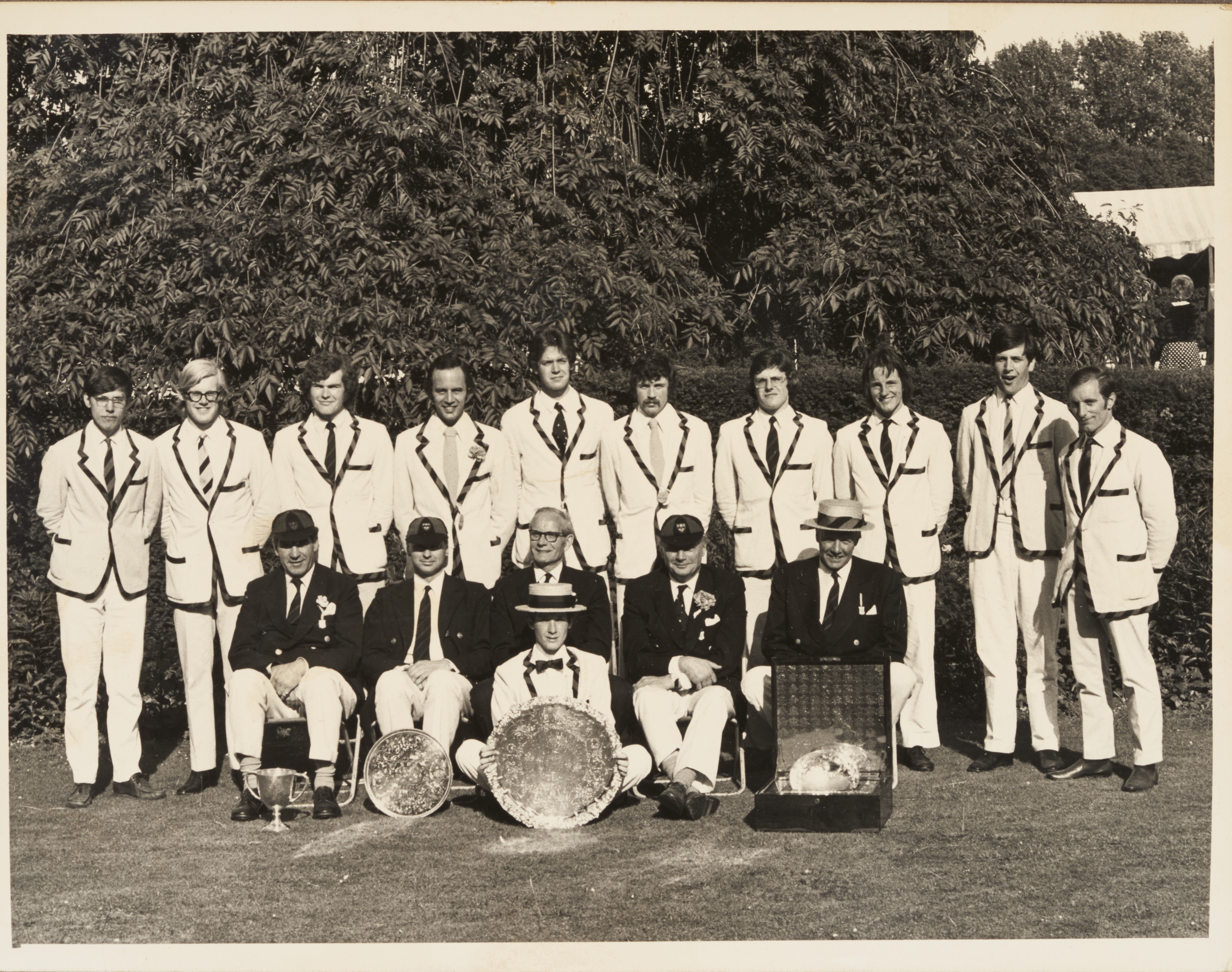 Photograph of a Jesus College Crew with Trophies
